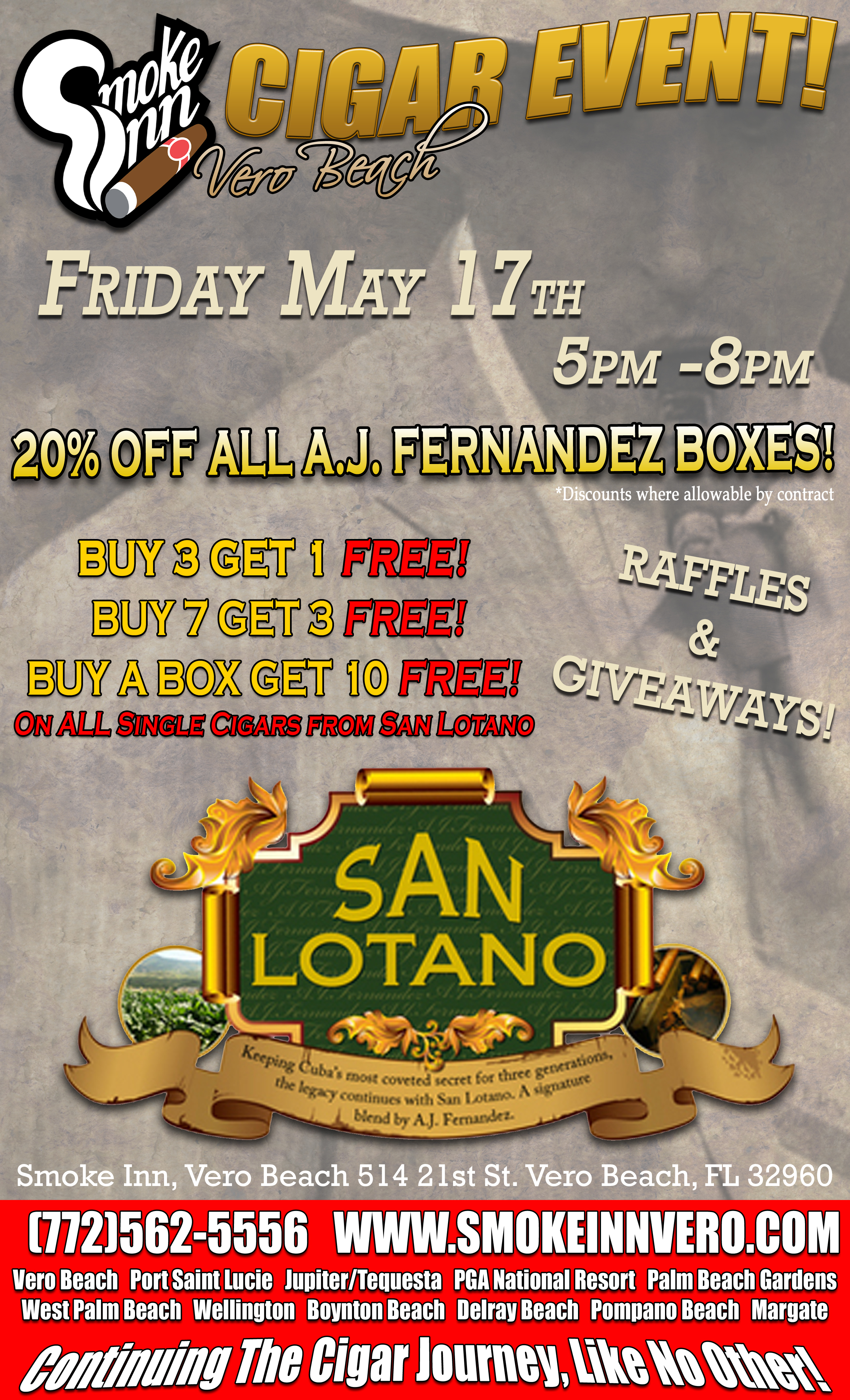 Posted on April 26, 2013, in Cigar Events and tagged San Lotano Cigar Event, Smoke Inn, Treasure Coast Cigar Event, Vero Beach, Vero Beach Cigar Event, Vero Beach Cigar Store, Vero Beach Cigars. Bookmark the permalink. Leave a comment.