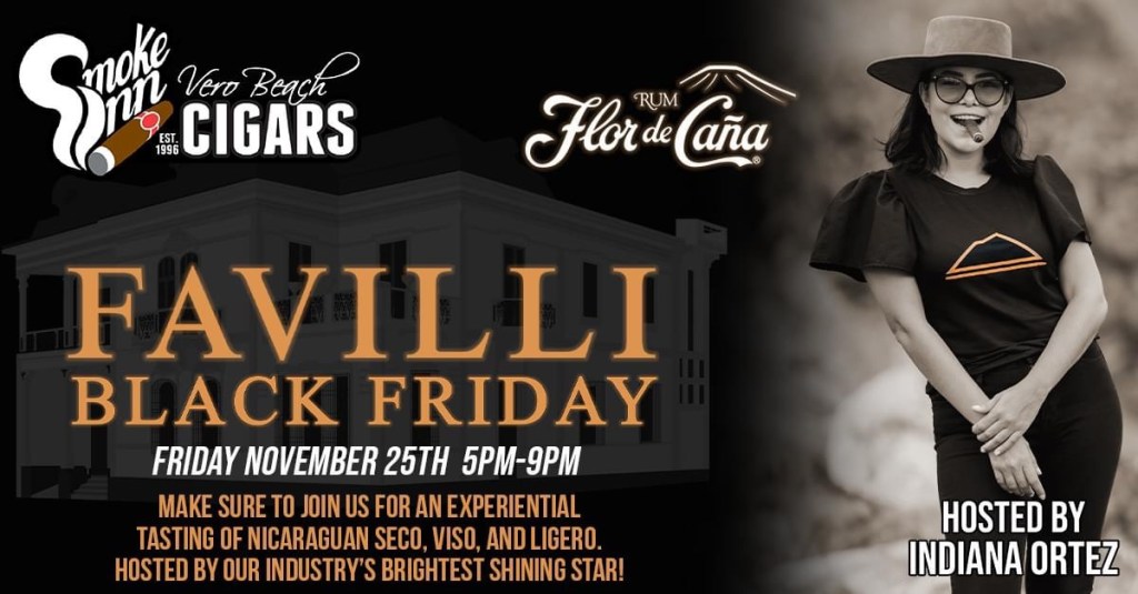 Join us on November 25th from 5pm-9pm for Black Friday with Favilli hosted by Indiana Ortez. We’ll be featuring an experiential tasting of Nicaraguan Seco, Viso, Ligero, and Flor de Cana Rum! In addition to Favilli’s newest release, Larillos! Make sure to stop in and partake in the Nica Spirit!