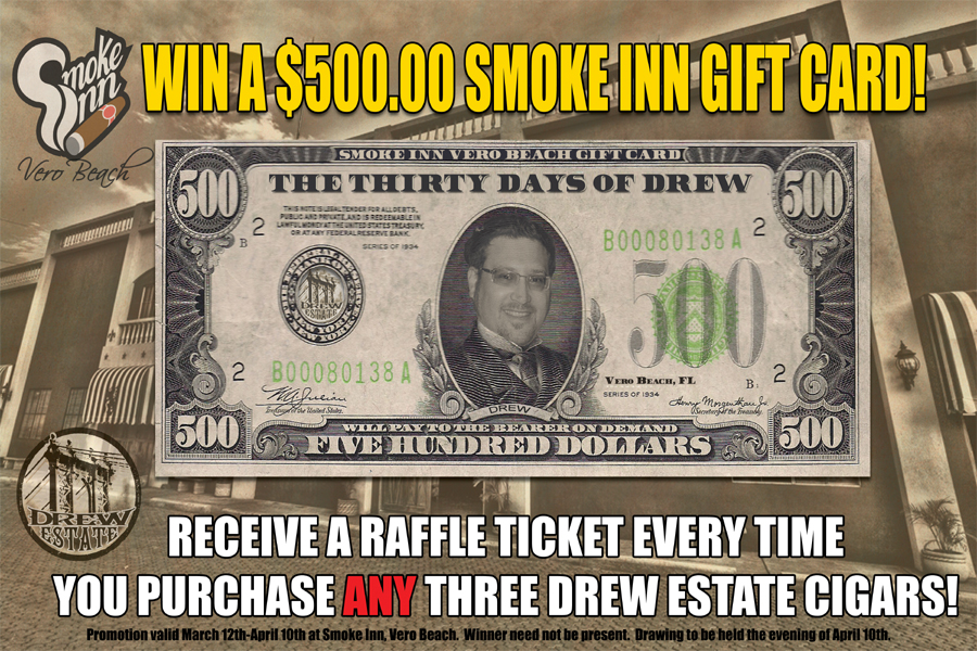 Join Smoke Inn Cigars, Vero Beach as we host our first Drew Estate Customer Appreciation Bash on Friday, April 10th from 5pm.-9pm! Jason Louie will be hosting a MIND BLOWING event with CRAZY Deals and UNBELIEVABLE raffle prizes that you can’t miss out on!!! Don’t miss it…