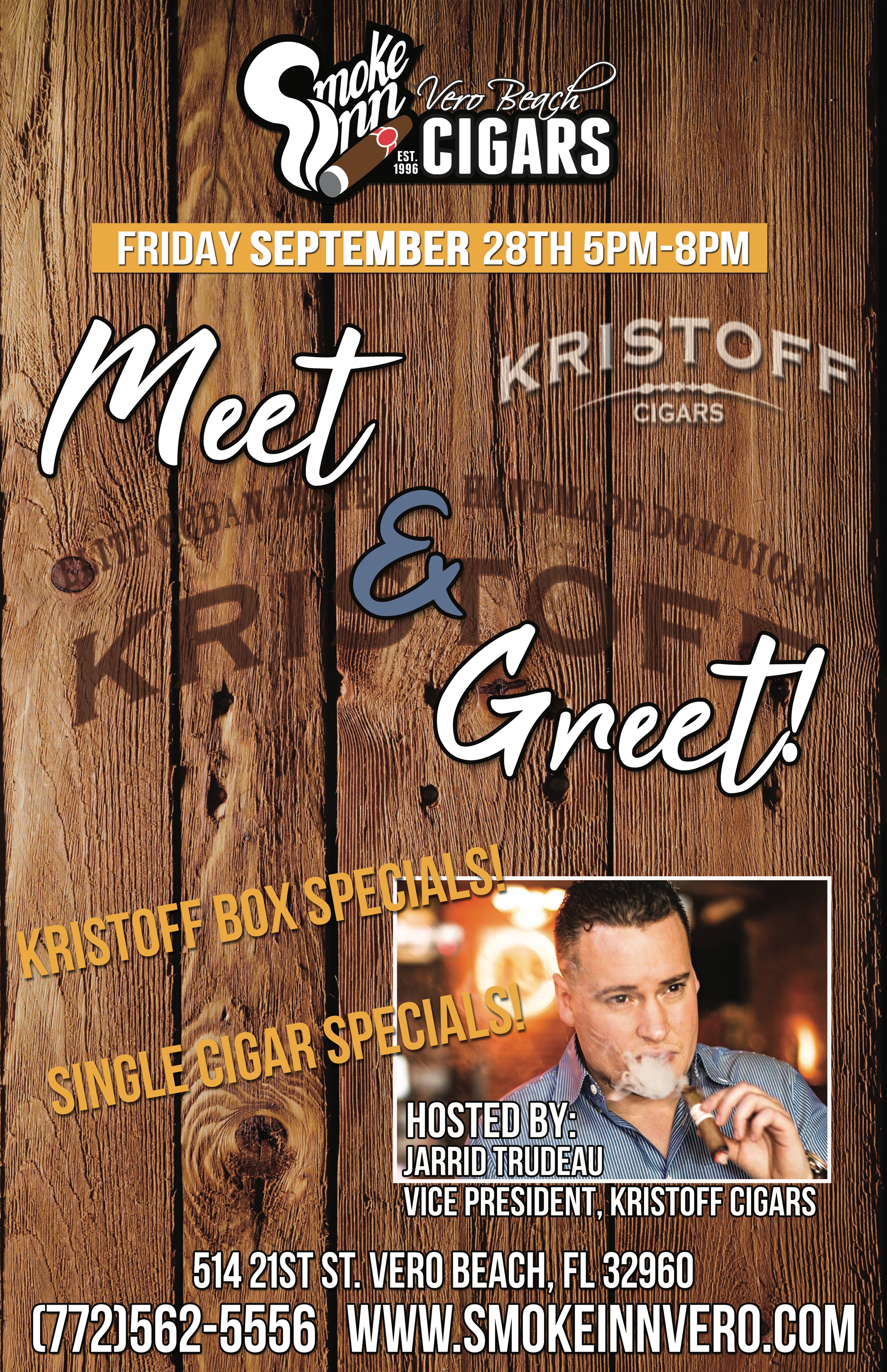 Join us along with Jeffrey Groover and Jarrid Trudeau, Vice President Kristoff Cigars for a night of good deals on great cigars, and good fun!