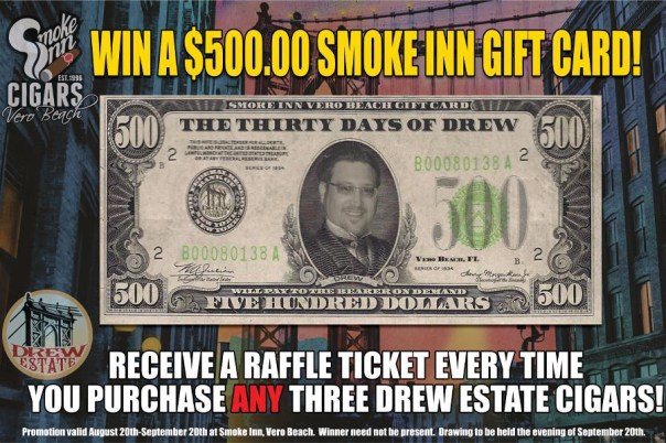 The 30 Days of Drew is back! Starting today you’ll receive a raffle ticket to WIN a $500 Smoke Inn Gift Card when you purchase any three Drew Estate cigars. From ACID to Undercrown, they’re all included! There’s no limit to how many times you can enter, so get your tickets today. #DrewDiplomat #de4l