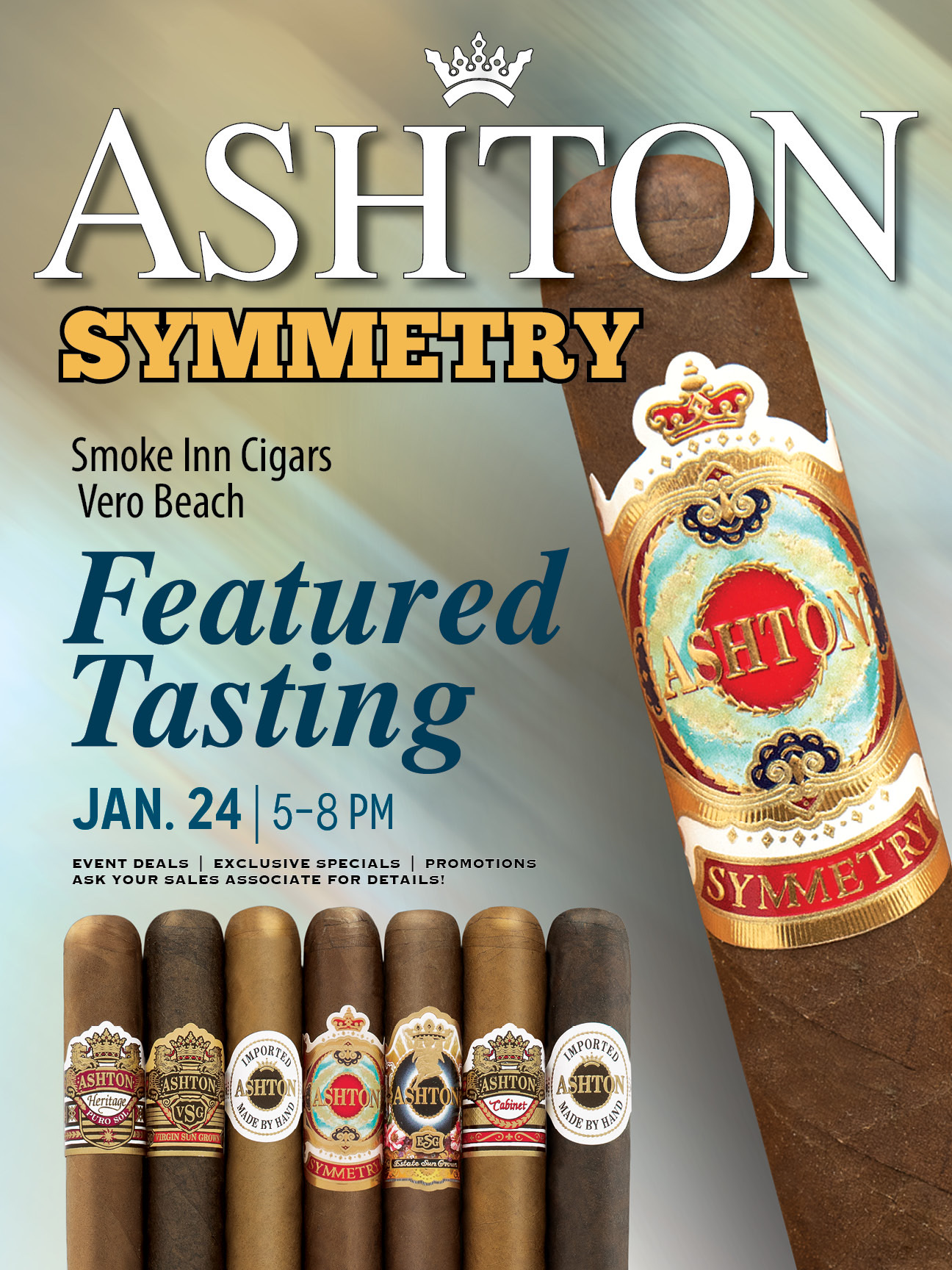 Get ready Vero Beach, Florida! Join us on January 24th from 5pm-8pm for an Ashton Cigars Tasting featuring Cigar Aficionado’s 94 rated Symmetry.