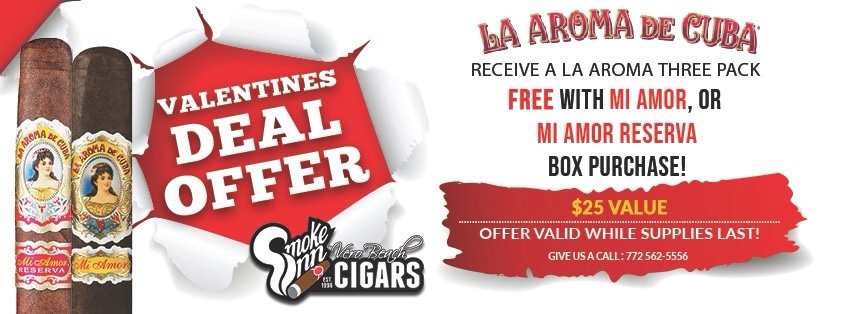 Who doesn’t love FREE cigars? Receive a La Aroma de Cuba three pack when you purchase any Mi Amor, or Mi Amor Reserva box.